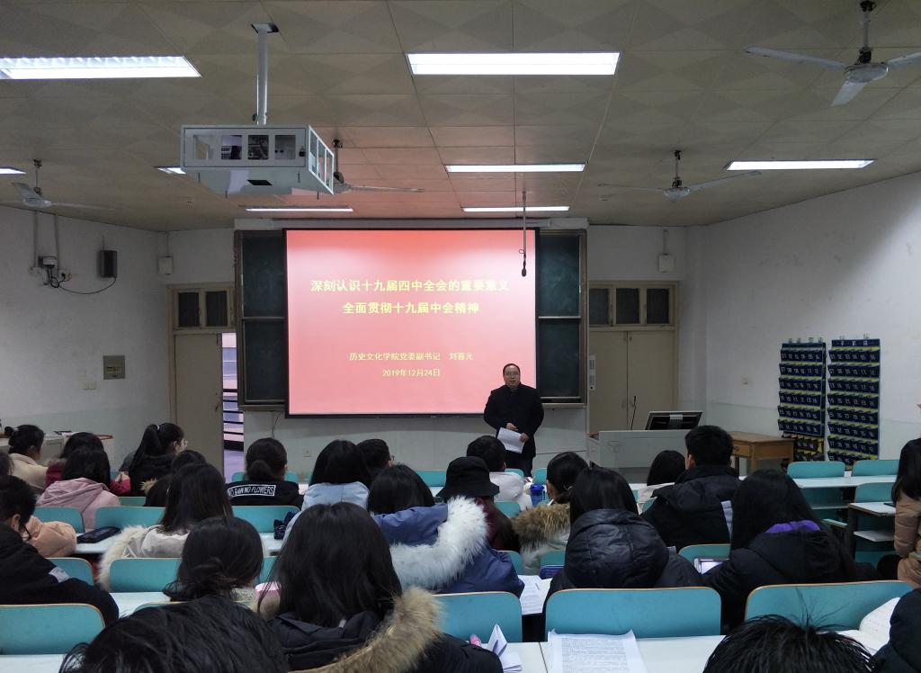 根据学院统一安排,12月24日下午,党委副书记刘喜元在人文楼509教室为全院员工党员作了题为“深刻认识十九届四中全会的重要意义,全面贯彻十九届中会精神”的专题党课。