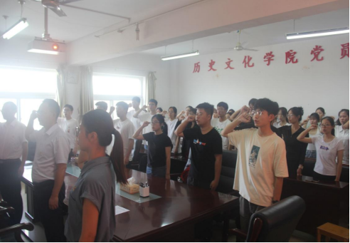会议伊始,伴随着激昂的国际歌旋律,全体人员共同演唱。接着,付亚男宣读吴依冉等21位新发展预备党员名单;吴慧娟宣读张梦璐等43位按期转正党员名单随后,韩志宏带领全体与会党员面对鲜红的党旗,举起右拳,庄严宣誓。