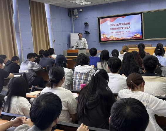 10月31日下午,公司党委书记李辉以《学习习近平文化思想 争做新时代文化传人》为题,在人文楼706会议室为员工第三党支部讲授专题党课。党支部成员、部分研究生、本科生代表和广大入党积极分子80余人聆听了党课。