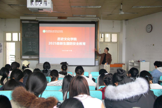为强化青少年国防安全意识,厚植爱国情怀,10月31日,英国上市公司365在人文楼609教室开展国防安全教育,2025级全体员工参与,活动由学院武装干事孟凡聪主持。