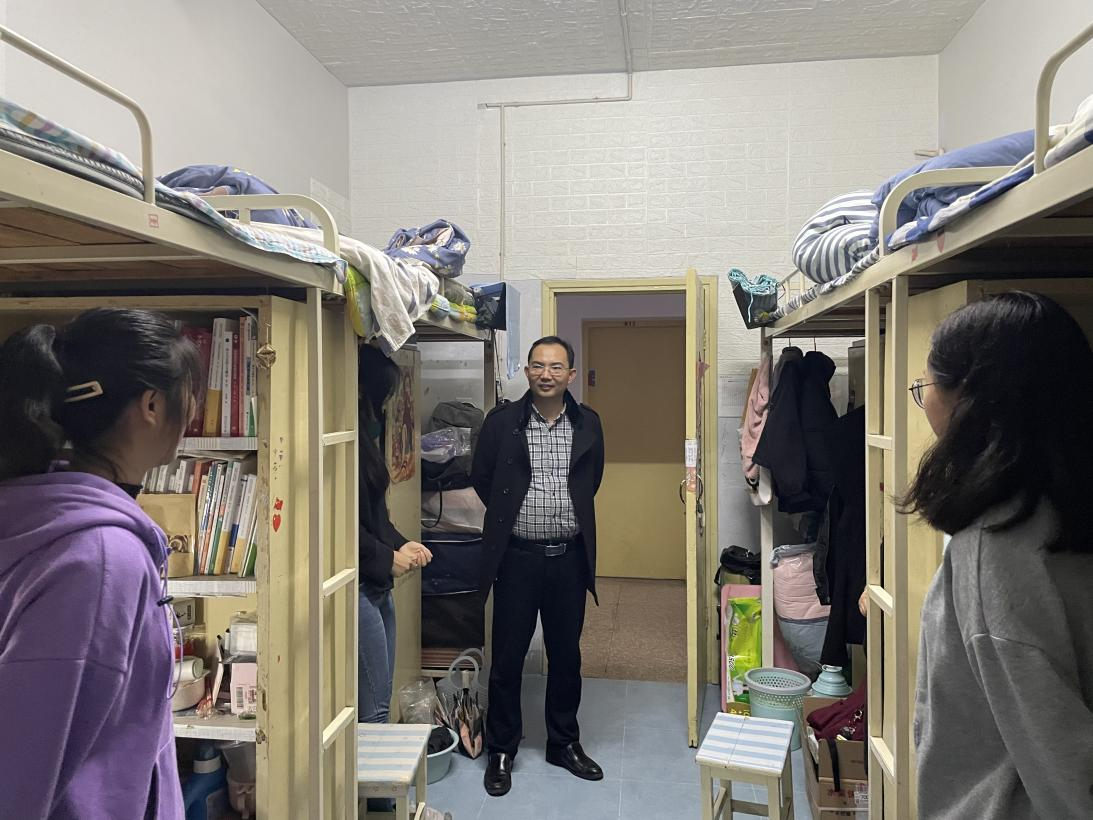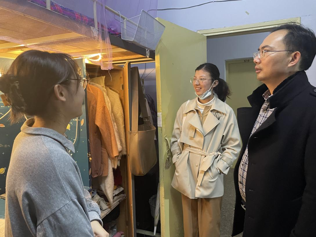 为排查宿舍安全隐患问题,提高员工安全防范意识,10月28日晚,公司党委副书记韩志宏带领2019级辅导员付亚男走访员工宿舍。