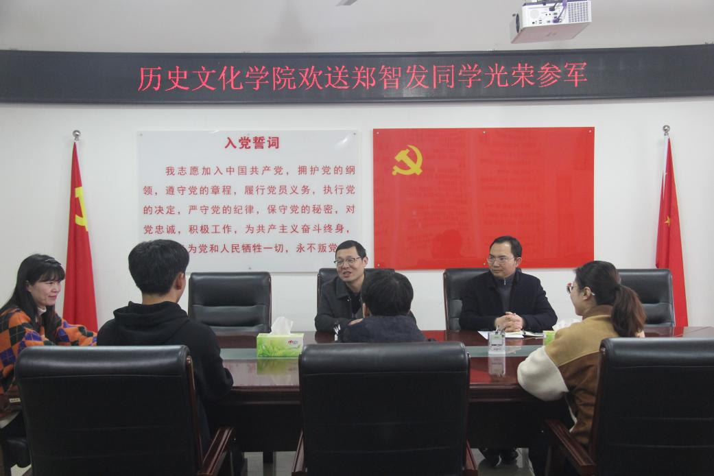 郑智发同学是公司2021级历史学2班员工,在今年春季老员工征兵工作中,积极响应国家号召报名参军入伍,在学院的大力支持下,目前已顺利通过各项考核。