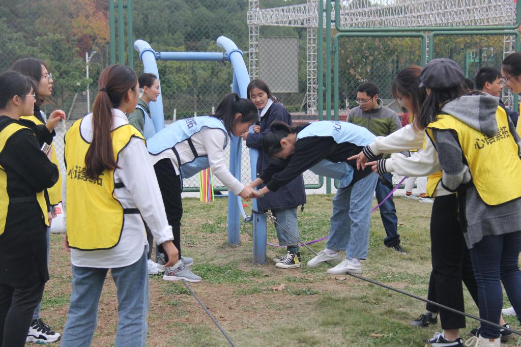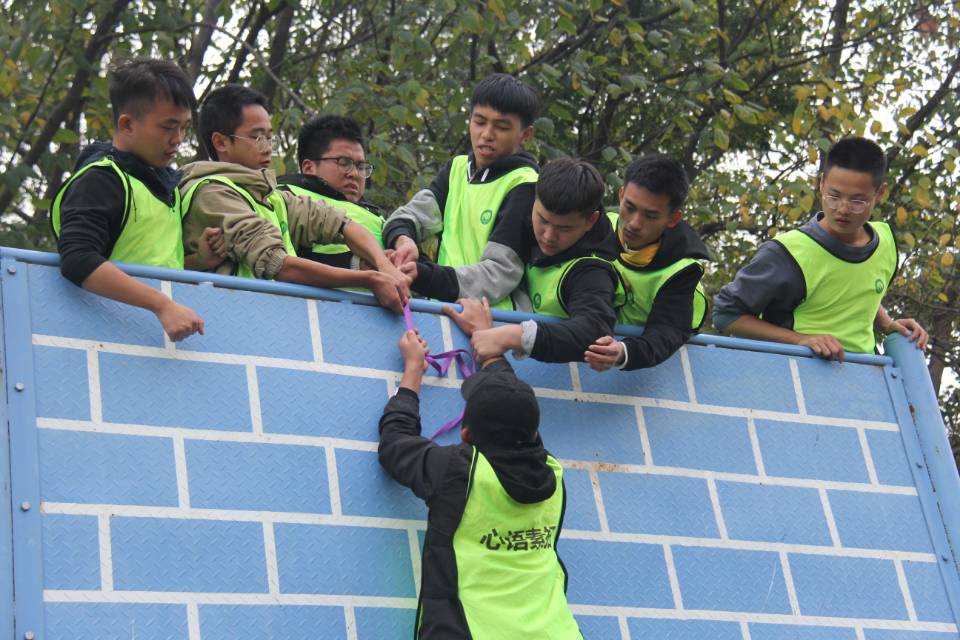 游戏开始前,大家分成三组进行了“两块五”、不倒森林、“竹行万里”等热身活动,同学们积极参与。热身结束后进入正式的游戏环节。游戏有“高空断桥”、穿越电网、翻越高墙与独木桥四部分组成。“高空断桥”要求大家爬上数十米的高空,在高空中行走,最后再从空中“跳下去”;翻越高墙,要求同学们不借助任何工具翻越4.2米左右的高墙,其中仅有一次使用辅助工具的机会;穿越电网要求同学们身体不接触到电网的情况下完成穿越电网的任务;独木桥要求队员们合作全员通过绳索。活动现场,同学们斗志昂扬,相互配合,依次完成了四项任务。