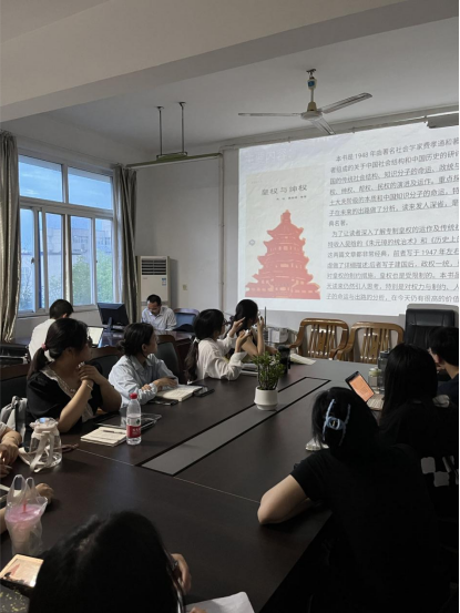 首先由叶经理进行了总结性点评,他提出:读书会学术讨论特别是历史系员工要注重史料的运用,以及在讨论过程中要抓重点、抓主题等宝贵意见。其后,法学与社会学学院的老师——杜连峰、周波、孙艳艳老师依次为我们点评。他们集中回答了讨论中的相关问题。杜老师提醒我们注意“非正式权力”这一社会学概念,政权机构等“正式权力”也许只达到县一级,但各种皇权的象征性权力如礼仪、伦常、民间信仰等实际上在县以下的基层社会无处不在。周老师提示我们读书要有目的、有问题,这样才能聚焦主题,真正有所收获;他结合《乡土中国》《乡土重建》等著作,系统梳理了费孝通先生对中国社会结构的认识,给同学们开拓了眼界。孙艳艳老师提示我们既要看到神权在制衡王权中的积极作用,也应看到西方神权的弊端(中世纪的黑暗),这种辩证思维也让同学们很受启发。最后孙启正老师进行总结性评论——在探讨历史时要有黄仁宇老师所说的历史的温情!尽管本书向我们展示了费孝通与吴晗等人对士大夫这一阶层的批判,但是他们也说了无论何时,始终都有像谭嗣同、文天祥、王安石这样的人!并引用鲁迅先生的话:“我们从古以来,就有埋头苦干的人,有拼命硬干的人,有为民请命的人,有舍身求法的人……虽是等于为帝王将相作家谱的所谓‘正史’,也往往掩不住他们的光耀,这就是中国的脊梁。”他启发我们还要看到知识分子的积极一面,如革命知识分子在某种程度上赓续了传统士大夫承继的“道统”,忧国忧民、为国为民,这是我们党始终具有顽强生命力的原因!也是党带领我们新中国不断向上发展的原因!是党带领我们民族立于世界强国之林的原因!