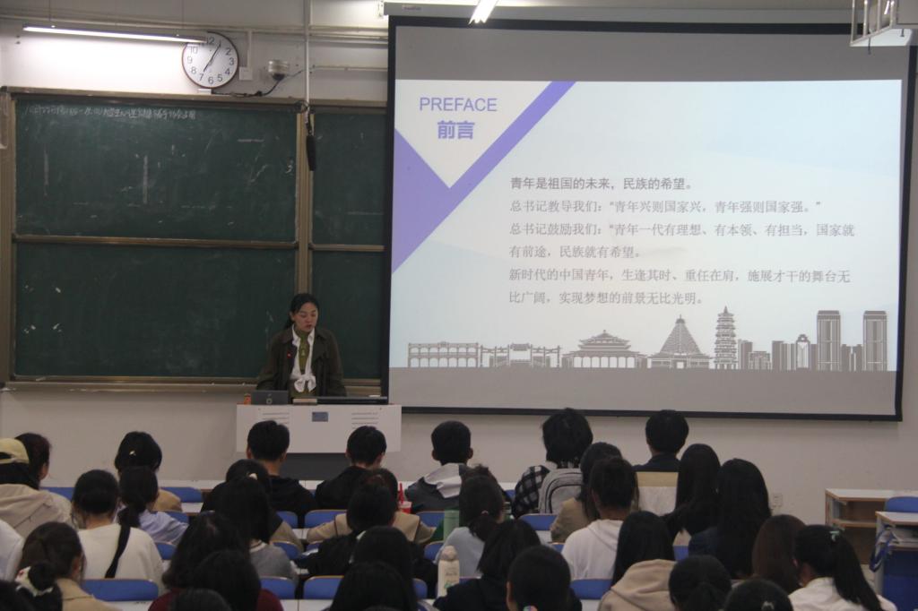 交流会伊始,刘洁以“青年兴则国家兴,青年强则国家强”教导同学们作为新时代青年生逢其时,肩担重任,要为实现中华民族伟大复兴添砖加瓦。接着,她向同学们分享了个人支教从教、考公考证的经历,道明了“千磨万击还坚劲,任尔东西南北风”的深刻含义,激励同学们要通过自身不断努力,才能拥抱幸福。刘洁再次强调了读书的重要性,并且生动形象地告诉同学们应以“系统化学习与碎片化学习并重”“传统学习方式与新兴学习方式并重”和“理论知识与实务技能并重”的方法来学习文化知识和提升自身技能。最后,她讲述自身一路艰辛、一路感恩的历程,语重心长地告诉同学们要心怀感恩、心存正气,并真挚地祝福同学们未来能够拨开层层迷雾,实现远大理想。