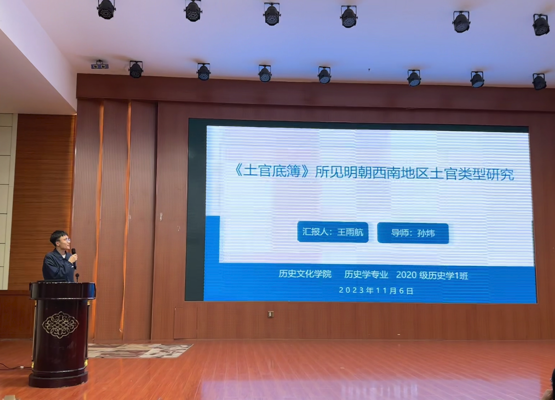 活动伊始,主持人介绍了研习会是旨在提高员工的科研能力,活跃学术思想,提高同学们的论文写作能力和学术创新参与率。李志坚宣读本次研习会论文获奖名单,由各位领导嘉宾为获奖同学颁奖。欣赏完民族舞《爱我中华》表演后,进入论文汇报阶段。2020级历史学3班韩爽、2021级文化产业管理班任思莹、2021级历史学2班田艳瑞、2021级历史学1班王江涛和2020级历史学1班王雨航分别阐述了自己的论文《民国时期河南光山县公路交通与经济发展》《互联网背景下信阳毛尖品牌形象塑造研究汇报》《明清安庆地区黄梅戏传入问题研究》《宋代修景与地方秩序——从士大夫的政治逻辑说起》《〈土官底簿〉所见明朝西南地区土官类型研究》。五位同学的论文选题新颖、结构完整、逻辑清晰,充分展现了公司学子良好的学术文化素养。各位评委老师点评精准到位,既肯定了论文的现实意义,也提出了可行性修改意见,深入浅出,令同学们受益匪浅。最后李辉作了总结发言,他首先感谢了长期以来支持和关注公司建设发展的领导老师,宣布第十九届老员工论文大赛已圆满画上句号。他勉励同学们要担当责任和使命,深入学习贯彻习近平文化思想,要坐得了冷板凳,敢于走出书房,迈向祖国大地,让习近平文化思想之花绽放在祖国的每一个角落。