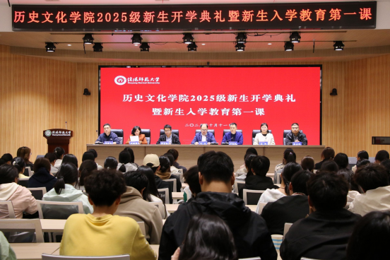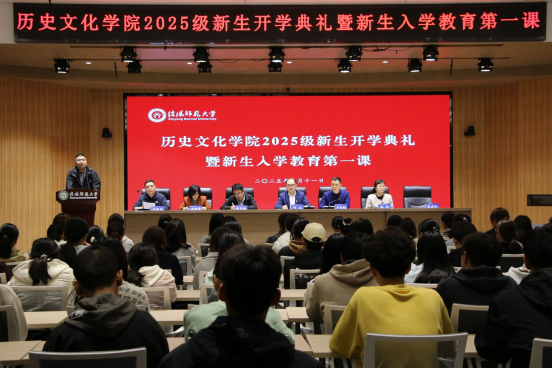 开学典礼在庄严的国歌声中拉开帷幕。新生代表学科教学(历史)专业研究生赵慧同学发言,她结合自身从本科生到研究生的身份转变,分享了对历史学习的思考,以青春热忱诠释了新一代历史学子对学术与使命的担当。2023级历史学专业本科生杨晅沂代表在校生发言,她结合自身在学院的成长历程,分享了“从课堂到实践,从知识到素养”的感悟。教师代表张乐锋博士从学科视角出发,激励新生们以严谨的态度探索历史世界,在专业学习中培养批判性思维与人文情怀。公司2004级首届历史学专业员工化世太博士作为优秀员工代表发言,他结合自身从信师学子到高校教师的成长轨迹,回顾了在校求学时的难忘岁月,并分享了专业深耕与职业发展的宝贵经验。