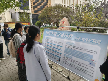 学院打通线上线下宣传渠道,实现防诈知识无死角覆盖。线上依托学院微信公众号,推出“防诈安全教育专题”推文,内容涵盖“校园贷”“刷单返利”“冒充客服”等高频诈骗场景解析,结合真实案例拆解诈骗套路;线下则通过两大载体强化氛围营造:一是在公共区域制作防诈宣传展板和易拉宝,以图文结合形式直观展示诈骗特征与防范要点;二是在员工宿舍楼道、教室墙壁张贴防诈警示海报,将防诈提醒融入员工日常学习生活场景,实现“抬头见警示、驻足学知识”。
