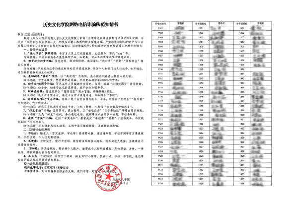 针对新生刚入校园、防诈意识较弱的特点,学院重点强化新生群体教育。一方面,在新生报到现场发放《英国上市公司365防网络电信诈骗安全教育知情书》,组织新生现场逐字学习诈骗常见类型、识别技巧及应对方法,并要求每位新生签字确认,确保“学习有痕迹、责任入人心”;另一方面,同步发放防诈安全教育提醒卡,卡片印有典型诈骗案例、预警电话及学院联系人信息,方便新生随时查阅,将防诈知识“随身携带”。