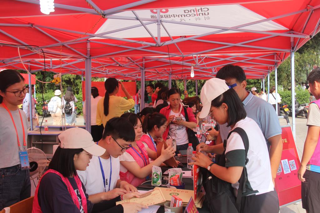 迎新工作如火如荼,公司迎新工作组教师、2019级新生辅导员、员工会成员们以及公司广大同学们都积极参与到迎新工作中来。火车站、汽车站接待点处有一早就在此等待的志愿者们;迎新大本营里,老师同学们为新生办理入学手续,帮忙拎行李,带领新生到宿舍。