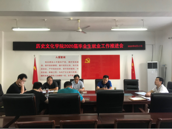 为认真落实公司毕业生就业工作,公司8月17日于人文楼8楼党员之家召开2020届毕业生就业工作推进会,公司党委书记李军辉、经理尹全海、党委副书记刘喜元、就业秘书及毕业班班主任参加会议。