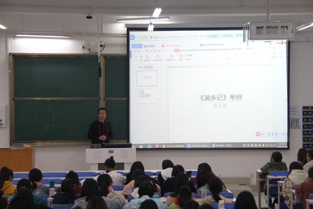 10月23日下午,公司李玉诚博士在社科楼212教室作了主题为“《濑乡记》考辨”的人文视野讲座。2018级历史学和人文教育班的百余名同学听讲。