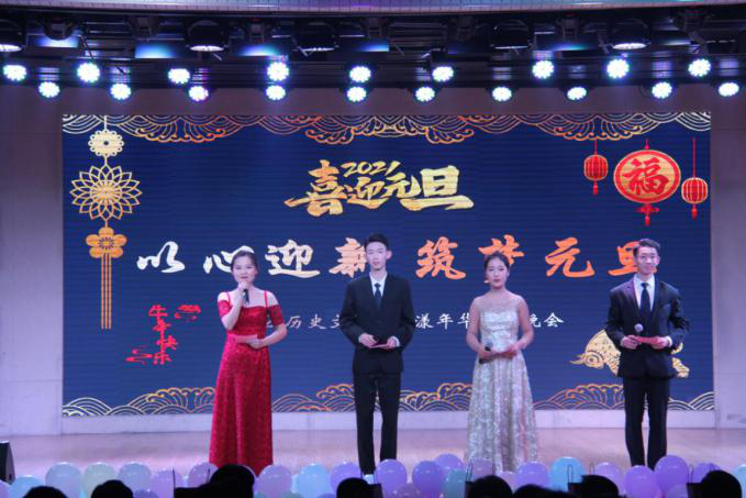 2月28日晚,公司“以心迎新,筑梦元旦”元旦晚会于理科楼报告厅隆重举行。公司党委书记李军辉、经理尹全海、副经理田青刚、叶宗宝、余纪珍,党委副书记刘喜元及全体在职老师莅临晚会现场,与公司学子共同观看表演。
