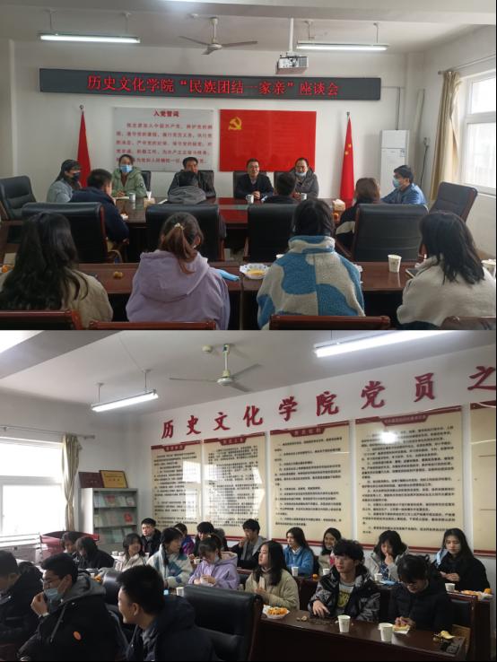 会上,韩志宏副书记首先说明本次座谈会的目的与意义。他强调,学院一直以来高度重视民族团结工作,开展形式多样、内容丰富的”民族团结一家亲”活动,不断促进各民族员工牢固树立中华民族共同体意识。苏和处长阐述了民族团结对于实现中华民族伟大复兴的深远意义,并对在场同学提出了几点要求,希望同学们树立正确的民族观,各民族同学要紧密团结起来,为实现个人价值和推动社会进步做出应有贡献。丁雪玲老师希望同学们珍惜大学四年生活,积极锻炼身体,增强体魄,多去图书馆看书,增长学识。同学们做了自我介绍,畅谈了各自学习生活情况,对学校和学院的关怀表示感谢,一定不负学校殷切期望学好知识、增强本领,为民族团结进步而努力。