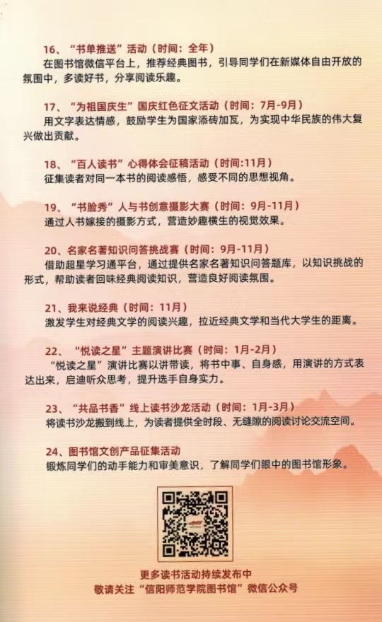附信阳师范学院第二十届阅读文化节活动方案