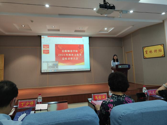 4月26日下午,公司于贤林讲坛举办信阳师范学院第二十届阅读文化节启动仪式,副董事长王金云,党委宣传部、教务处、研究生处、员工处、团委、各学院负责人及图书馆负责同志参会。会议由图书馆党总支副书记刘洋主持。