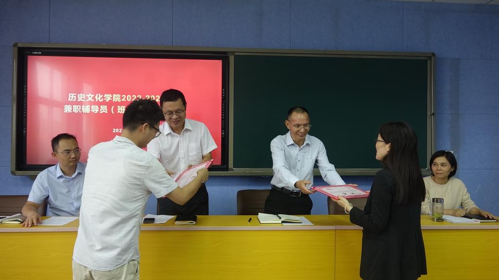 2022年9月20日下午,历史文化公司于人文楼706举行2022-2023学年兼职辅导员(班主任)聘任仪式。公司党委书记李辉、经理叶宗宝、党委副书记韩志宏、副经理史经霞及全体教职工参加。仪式由韩志宏主持。