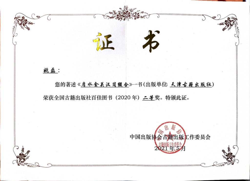近期,公司姚磊老师的著作《肩水金关汉简缀合》荣获多项荣誉。在中国古籍出版协会古籍出版工作委员会主办的“全国古籍出版社百佳图书(2020年)”评选中,获评二等奖。该奖为唯一一项全国性古籍专业图书奖项,设立宗旨为集中展示全国专业古籍整理类图书的年度优秀成果,有“全国古籍类图书整理出版最高奖”之称。